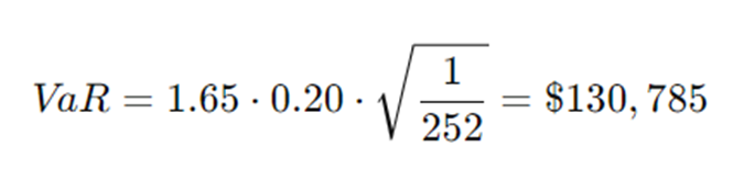 Para un horizonte de 1 día y un nivel de confianza del 95%, el Zα correspondiente es 1.65.